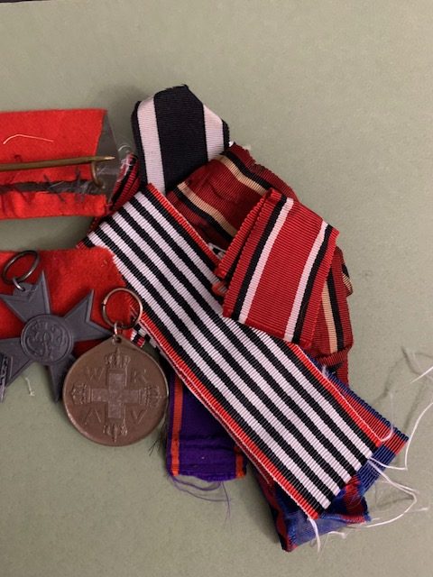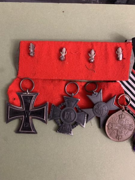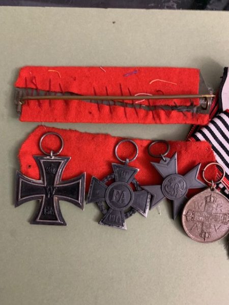 ORIGINAL WW1 EK2, ODENBURG CROSS, WAR AID CROSS AND RED CROSS MEDAL 3rd CLASS WITH RIBBONS