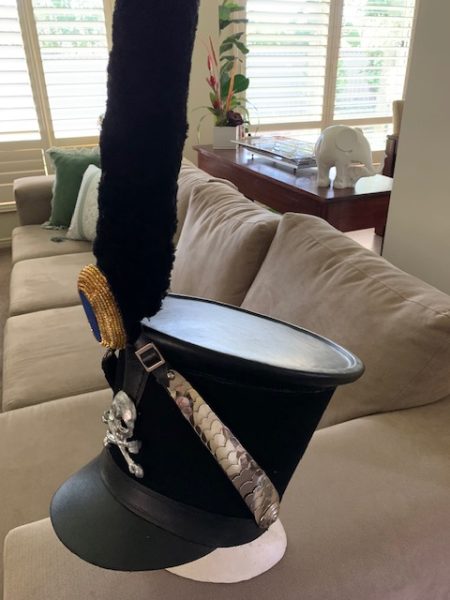 REPLICA 1815 BRUNSWICK HUSSARS SHAKO AT THE BATTLE OF WATERLOO, SIZE 59